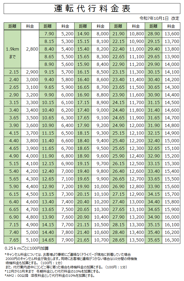 平素より弊社の運転代行サービスをご利用いただき、誠にありがとうございます。